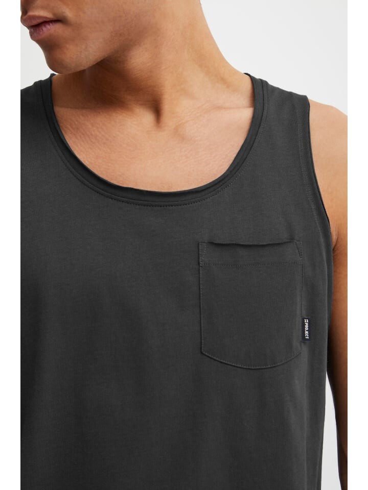 ДЕТАЛИ И ОСОБЕННОСТИ: Майка, круглый вырез, стандартный крой, тканевая нашивка, прямой край, без рукавов, один нагрудный карман, высококачественный хлопковый материал, открытые края на рукавах и вырезе.
