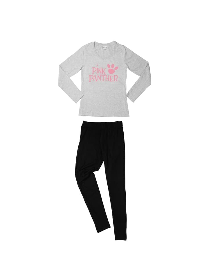 Женская пижама Pink Panther. Пижамный комплект с длинными рукавами и брюками серого/черного цвета