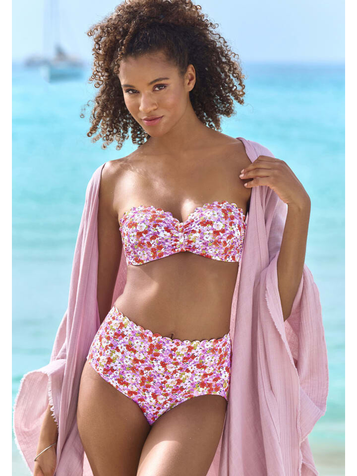 Уплотненный лиф бикини-бандо на косточках от Lascana. Модный узор по всей поверхности и декоративный волнистый край, обработанный лазером. Съемный воротник-халтер для завязывания. С застежкой сзади. Из серии Микс-Кини. Мягкая микрофибра.