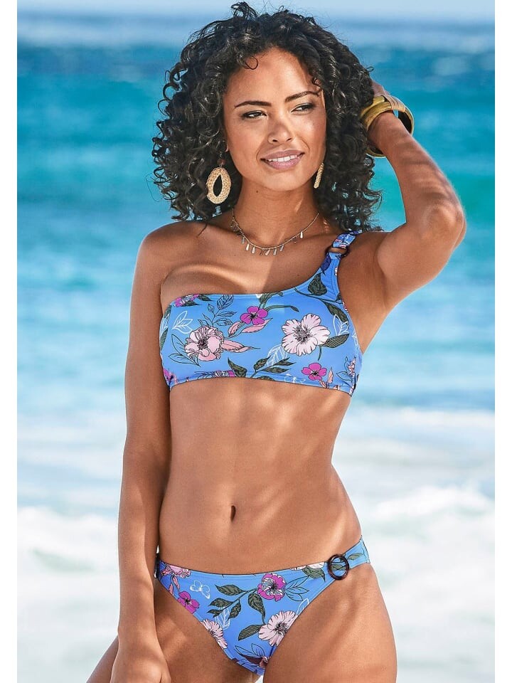 С модным цветочным узором: верх бикини-бюстье от s.Oliver. Изысканный дизайн на одно плечо с декоративным кольцом. Съемные мягкие чашки. Мягкая микрофибра.