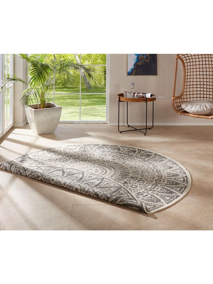 С помощью этого двустороннего коврика для дома и улицы вы сможете внести разнообразие в свой дом. Просто переверните его, и вы увидите этот современный тканый ковер по-другому. Сизаль выглядит так, как будто круглый ковер соткан из натуральных волокон, но сделан из 100% полипропилена. Качество изготовления обычно высокое, а двусторонний ковер подходит для сада, террасы и балкона, а также для всех внутренних помещений.