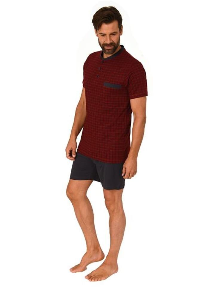 Мужская короткая пижама в клетку с планкой на пуговицах и нагрудным карманом - до 64 размера