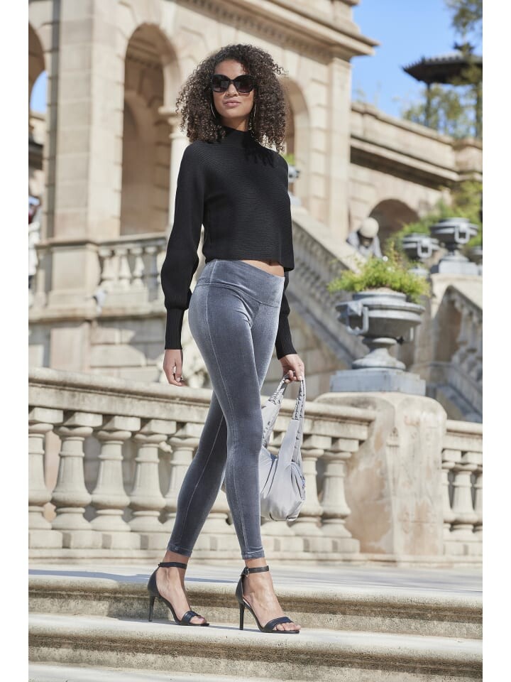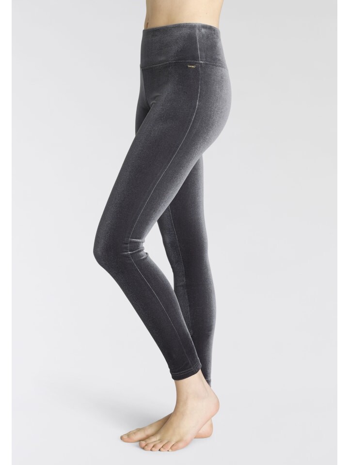 Блестящие леггинсы от Lascana. Широкий, высокий пояс. Небольшая эмблема сбоку. Для отдыха и спорта. Изготовлен из мягкого бархата.