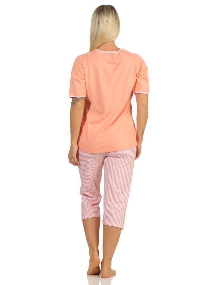 Пижамные брюки длиной 3/4 Пижамы полосатые, а однотонная футболка с короткими рукавами впечатляет такими деталями, как контрастный вырез горловины и модная надпись.