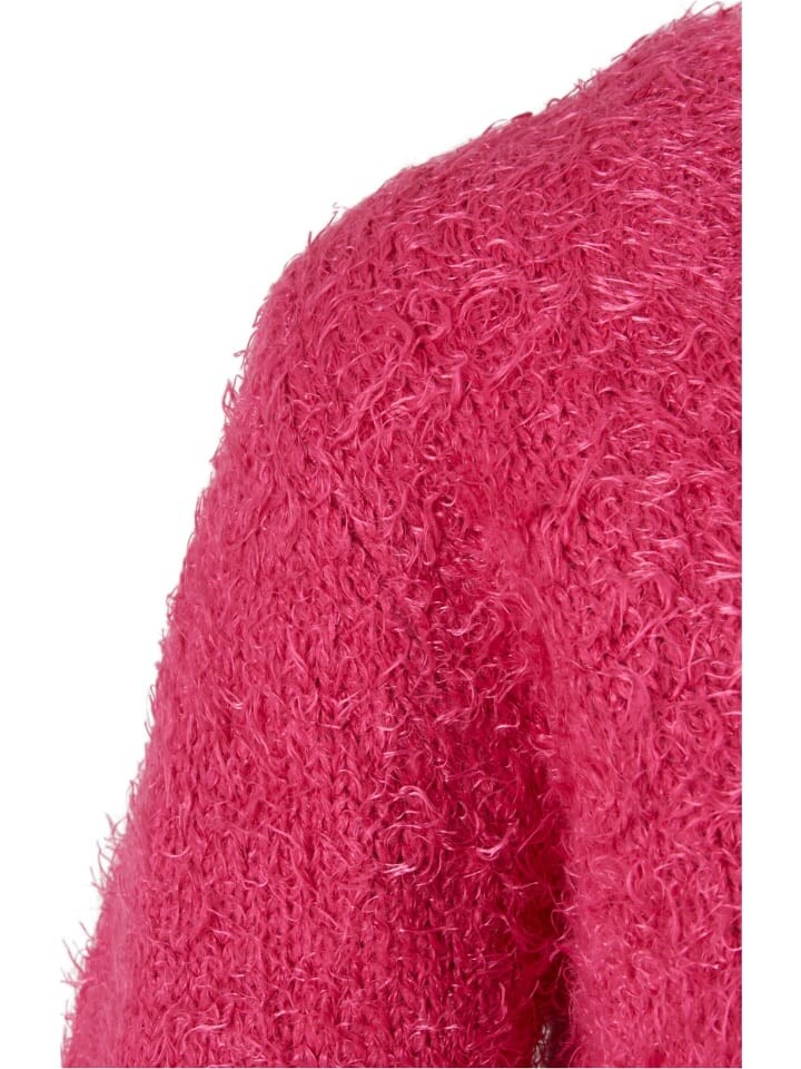 Женский кардиган имеет объемный вырез, в нижней части которого его можно застегнуть шнуровкой. Длинные рукава и укороченная длина кардигана идеально сочетаются с кардиганом, который изготовлен из мягкой ткани, состоящей из акрила и полиамида, что придает ему пушистую перьевую структуру. Кроме того, трикотажные манжеты на вырезе, манжетах и подоле тщательно продуманы с изменением рисунка. Женский кардиган имеет облегающий крой и прекрасно сидит по фигуре.
