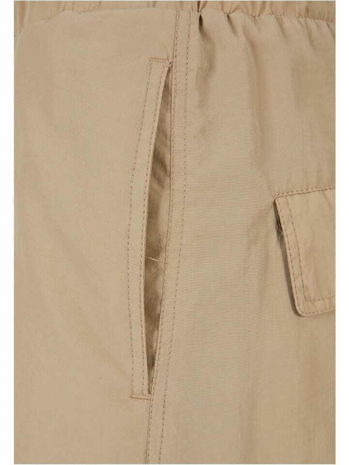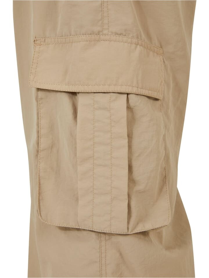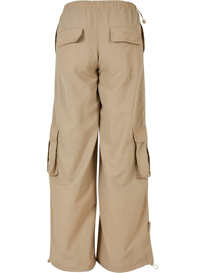 Женские брюки впечатляют широкими и удобными брюками-баллонами, выполненными в стиле карго. Низкий эластичный пояс чуть выше бедер дополнен кулиской и стопором. Концы штанин также оснащены резинкой и стопорами, которые создают широкую форму шароваров. Имеет два боковых кармана и два задних кармана с клапанами. Типичные грузовые карманы расположены низко на внешней стороне ног, на высоте колен. Материал из нейлоновой мятости и свободный покрой с охлаждением умело дополняют стиль.
