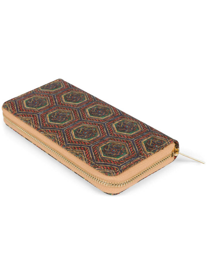 женский кошелек styleBREAKER из пробки с ярким этническим узором, застежкой-молнией по всему периметру.