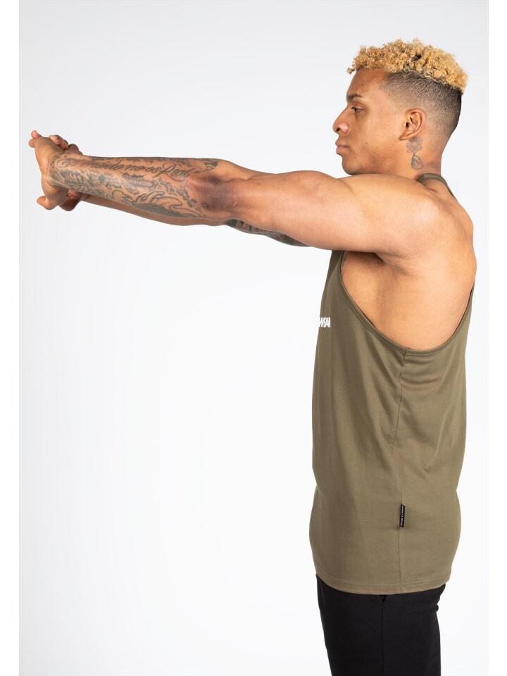 Покажите мышцы, над которыми вы так усердно работали, создавая эластичную майку Carter. Этот верх гарантирует, что вас ничто не ограничивает во время тренировки. Он имеет регулярную посадку и кажется легким. Он изготовлен из смеси высококачественного хлопка и спандекса, что делает майку эластичной. Ношение противогазовой шапки обеспечивает максимальную свободу движений. Эластичная майка Carter украшена трафаретной печатью логотипа Gorilla Wear на груди. Доступен в трех цветах: армейский зеленый, белый и черный. Покажите свою физическую форму и дайте всем знать, что вы являетесь членом #teamgorillawear!