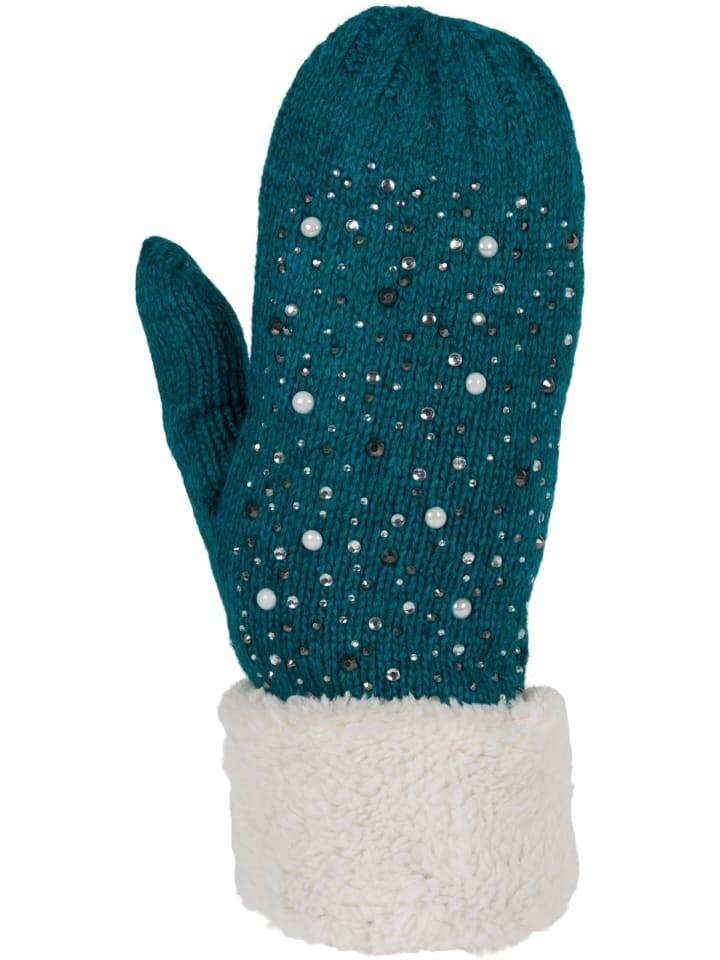 styleBREAKER однотонные вязаные перчатки с теплой подкладкой - варежки, украшенные стразами и жемчугом, и подкладка из термофлиса.