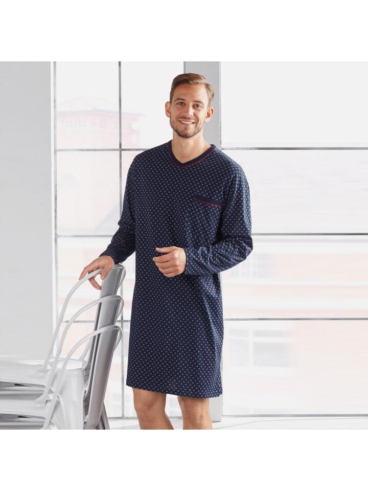 Мужская ночная рубашка из одинарного джерси Erwin Müller. Ночное белье классического кроя удобно и комфортно. Элегантный узор галстука по всей поверхности выглядит очень привлекательно. С окантованным V-образным вырезом, нагрудным карманом и боковыми разрезами. Наслаждайтесь комфортом благодаря превосходному качеству. Прилегает к коже, мягкий и дышащий.