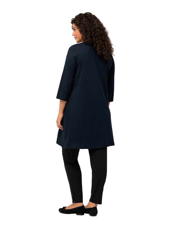 Длинная рубашка, А-силуэта. V-образный вырез с декоративными лентами, рукава 3/4. Удобный широкий низ.