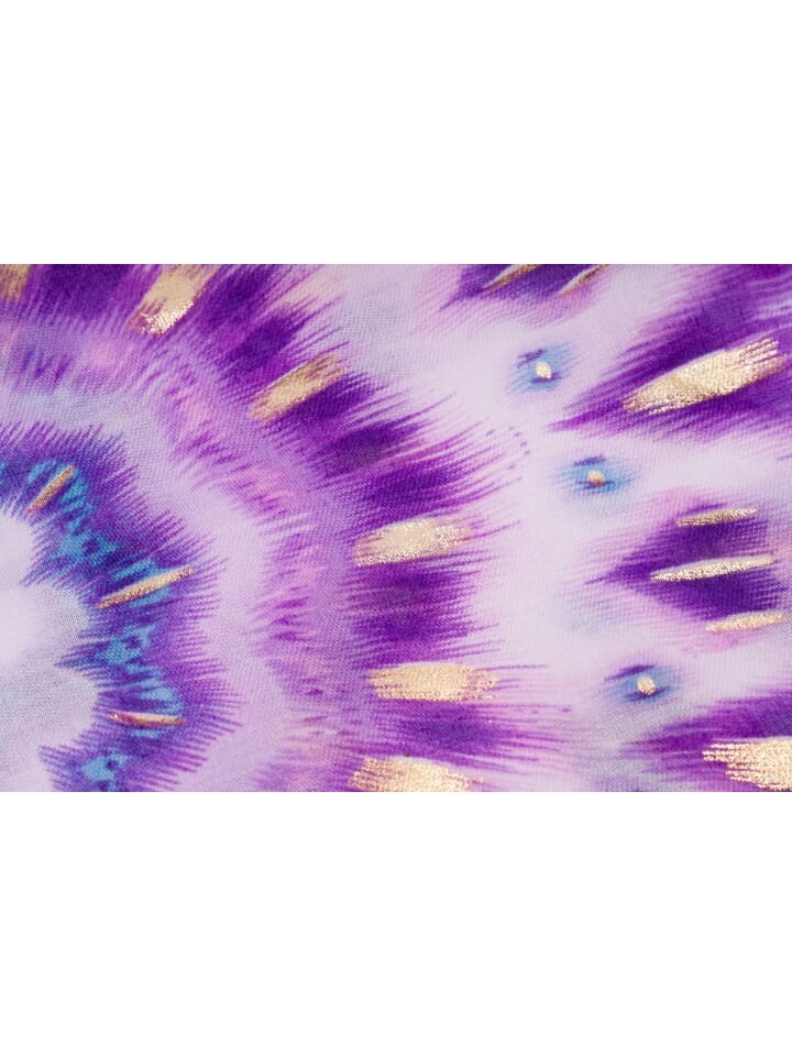 Мягкий легкий шарф styleBREAKER с абстрактным рисунком мандалы в стиле батик и металлизированными полосками с короткой бахромой на концах.