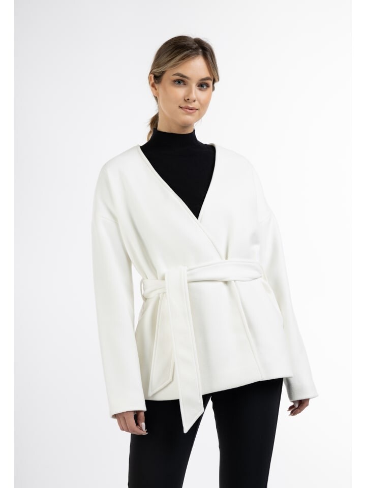 В белой куртке DreiMaster Klassik мы встречаем четкие линии и минималистичный дизайн. Модель без воротника изготовлена из мягкой смеси материалов с содержанием шерсти, имеет открытую переднюю часть и подчеркивающий пояс пояс, который объединяет открытый стиль. Два боковых кармана смягчают конструкцию, которая закрывается на две кнопки.