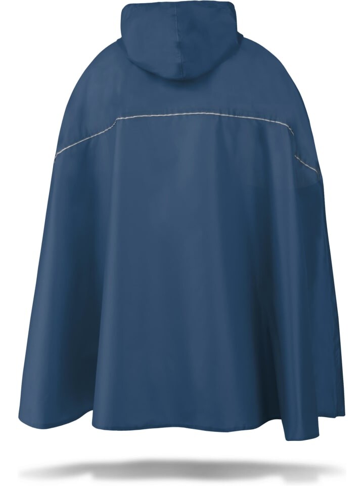 Для ежедневных поездок на велосипеде интегрированы две дополнительные функции. Дождевик оснащен светоотражающими полосами 3M Scotchlite с обеих сторон, что повышает безопасность дорожного движения и обеспечивает раннее обнаружение в сумерках. Кроме того, к нижней стороне прикреплены практичные ремни для рук и поясной ремень, чтобы предотвратить раздражающее развевание на ветру. Под пончо можно даже носить небольшой рюкзак. Два боковых клапана с кнопками позволяют при необходимости вытянуть руки и руки через пончо.