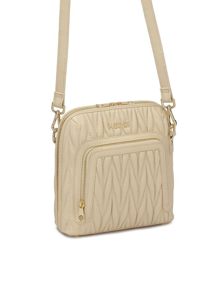 Сумка, изготовленная из зерненой кожи премиум-класса нейтрального бежевого тона, имеет привлекательную форму и привлекательный стеганый узор, придающий ей элегантный и роскошный вид. Квадратная форма с двусторонней молнией и швами по краям не только красиво выглядит, но и удобна в носке. Благодаря регулируемому ремню сумку можно носить через плечо или как сумку через плечо.