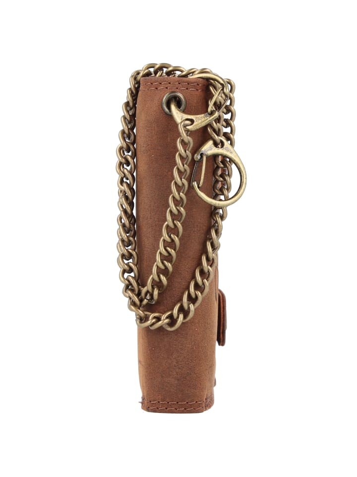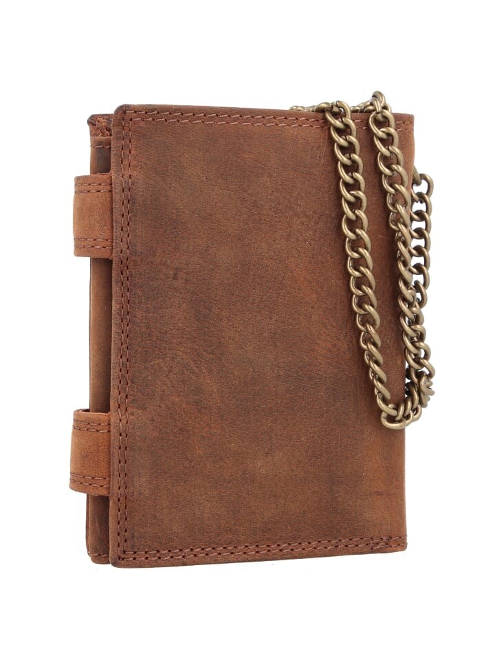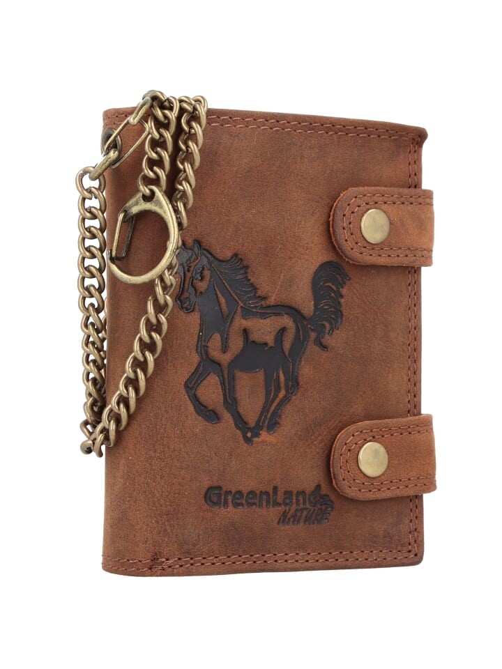 Качественный мужской кошелек Greenland Nature из натуральной кожи. Кошелек оснащен цепочкой для крепления к поясу и предлагает достаточно места для кредитных карт и наличных. Ваши данные защищены блокировщиком RFID.