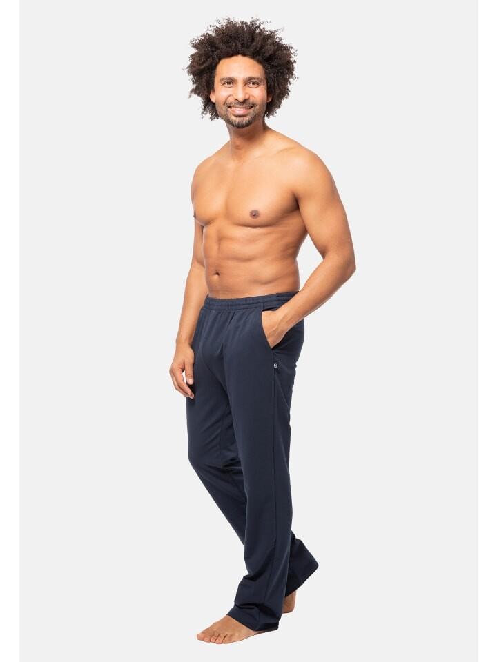 Брюки для отдыха из мягкой ткани интерлок. Эластичный пояс на шнурке, боковые карманы и задний карман на молнии. Эластичный материал делает брюки особенно удобными в носке и чрезвычайно простыми в уходе.
