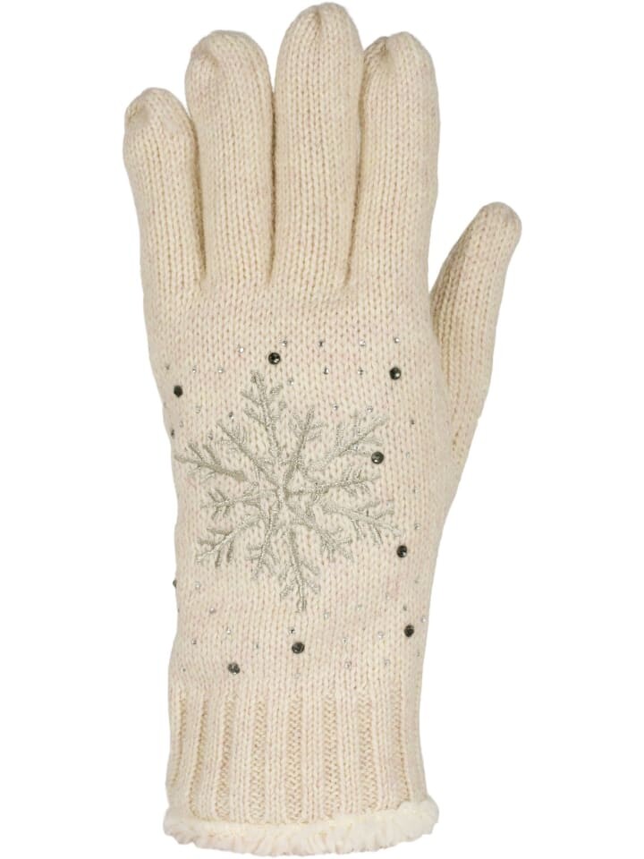 styleBREAKER зимние вязаные перчатки на теплой подкладке с вязаной снежинкой серебристого цвета, аппликацией из стразов и флисом.
