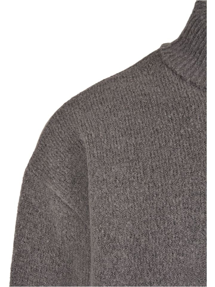 Классический мужской свитер трикотажного типа имеет ребристую высокую водолазку и эластичные манжеты в рубчик на рукавах и подоле, придающие ему форму. Модель представляет собой повседневный крой оверсайз с заниженной линией плеч. Мягкий мужской свитер изготовлен из акрила и полиэстера.