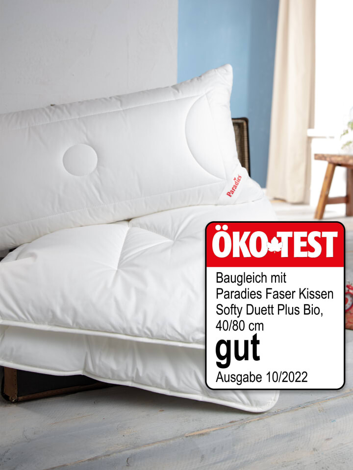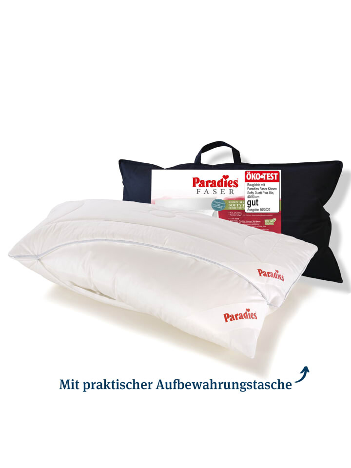 Подушка Softy Duett Plus Bio доступна в размерах 40x80 см и 80x80 см. Подушка размером 40x80 получила оценку «хорошо» от Öko Test. Подушка для сна наполнена популярными волокнистыми бусинами Paradies Softys с высокой поддержкой. Благодаря встроенной молнии количество наполнения можно регулировать в любое время и обеспечивает удобную поддержку головы и шеи. Пушистый наполнитель покрыт мягкой тканью из органического хлопка Paradise Greentex, изготовленной из 100% органического хлопка. Отдельный внешний чехол и внутренняя подушка обеспечивают особенно надежную поддержку области головы и шеи. Наружный чехол из стеганого флиса из текстильного волокна состоит из мягкой ткани из органического хлопка Paradise Greentex, изготовленной из 100% органического хлопка. Изысканность ткани также придает чехлу особую мягкость. Внутренняя подушка также изготовлена из высококачественной органической хлопковой ткани Paradies Greentex. С помощью молнии внешний чехол можно легко снять и индивидуально отрегулировать наполнение внутренней подушки. Обе части подушки можно стирать при температуре до 60°C, сушить в стиральной машине и помещать в стандартную стиральную машину