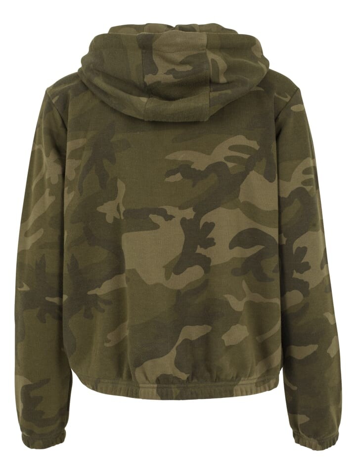 Спортивный, спортивный: женская камуфляжная укороченная толстовка с укороченным кроем и слегка присборенными манжетами легко может сойти за классную спортивную одежду. Мягкая махровая ткань и стильный камуфляжный принт явно говорят об уличной одежде - по-настоящему повседневная базовая вещь.