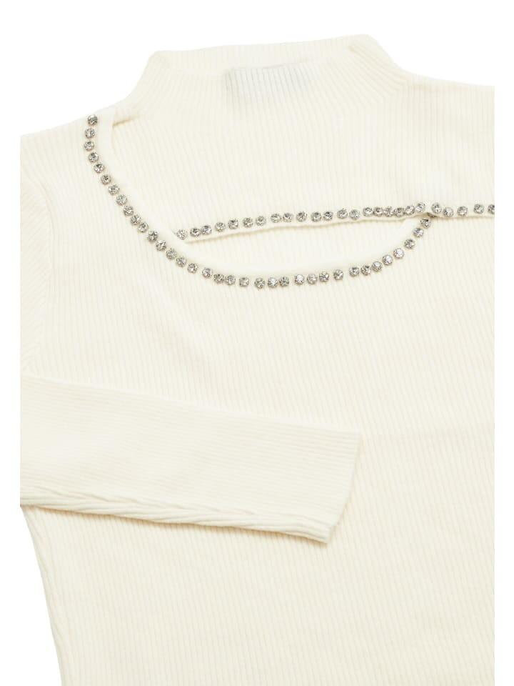 Обновите свой зимний гардероб этим шикарным вязаным свитером. Высокую водолазку подчеркивает уникальный вырез на груди, украшенный светоотражающими заклепками или стразами. Ребристая текстура обеспечивает эластичность и стиль, а облегающий силуэт подчеркивает вашу фигуру.