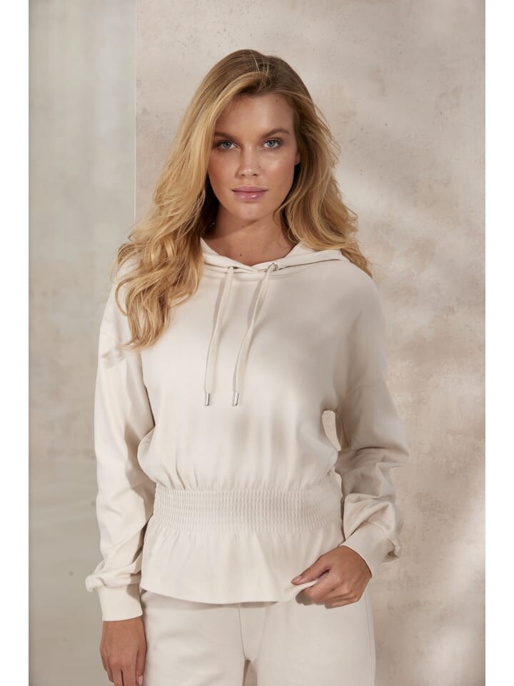 Толстовка с капюшоном от Lascana. Присборенный пояс. Капюшон на шнурке. Длинные рукава с ребристыми манжетами. Мягкое качество.