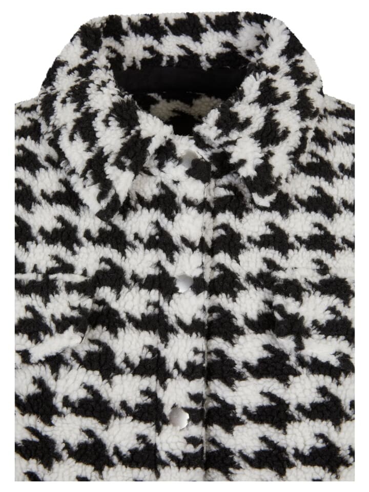 Женская рубашка заслуживает двойного признания: во-первых, из-за уютного материала шерпа из полиэстера, а во-вторых, благодаря дерзкому узору по всей поверхности. Классическими элементами являются воротник, планка с пуговицами и закругленный низ, спинка немного длиннее. Женский верх на подкладке из тафты. Он становится модным благодаря модному крою оверсайз.
