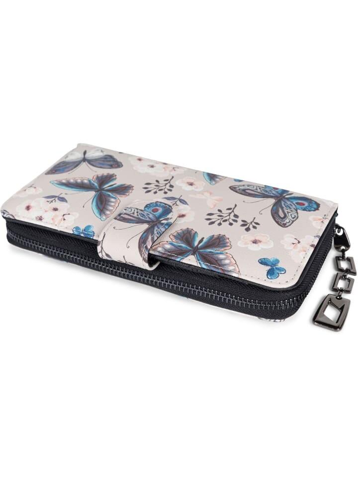 стильный кошелек BREAKER с ярким узором в виде бабочек, молнией по всему периметру и отдельным отделением на кнопке.