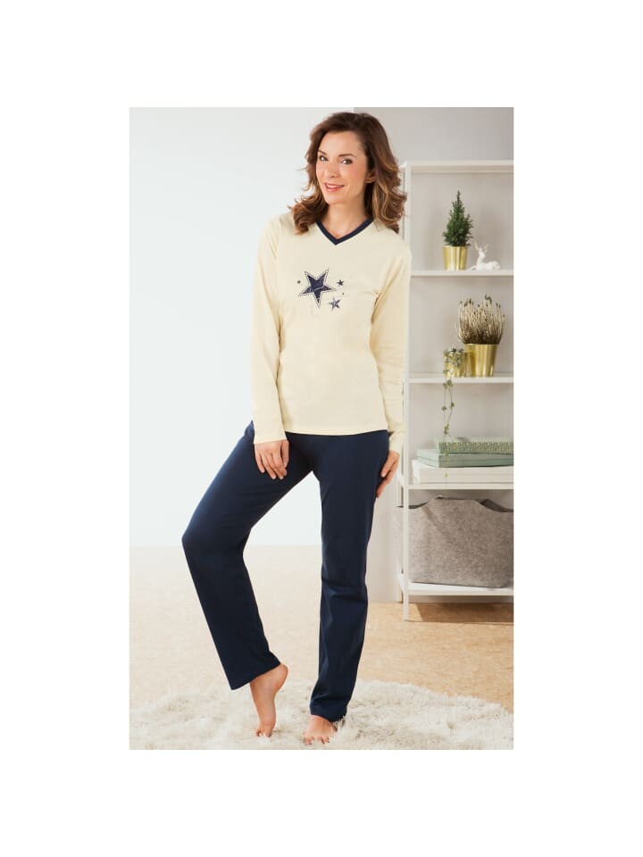 REDBEST женская пижама из одинарного джерси. Игривое ночное белье с нарядным внешним видом обещает сладкие сны. Звезды украшают верх ярким V-образным вырезом. К нему прекрасно подойдут однотонные длинные брюки со стеганой резинкой на поясе. Приятное к телу качество, удобный крой, дышащий и приятный.