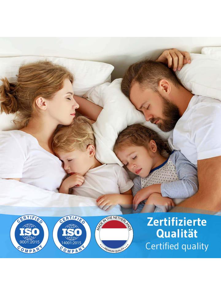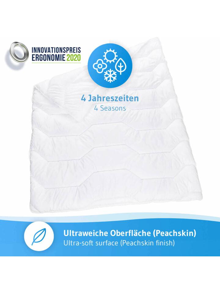 Одеяло BLANCO обеспечивает здоровый сон с высоким уровнем комфорта круглый год. Защита Sanitized защищает одеяло от бактерий, пылевых клещей и неприятных запахов и, согласно дерматологическим тестам, поэтому идеально подходит для аллергиков и астматиков. Таким образом, пуховое одеяло BLANCO гарантирует здоровый и гигиеничный сон. Кроме того, инновационное полое волокно Trevira обеспечивает высокую воздухопроницаемость и превосходное регулирование влажности во время сна. Отделка пододеяльника персиковой кожей также придает одеялу комфортную мягкость и пушистость.