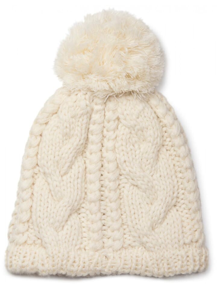 - Классический длинный и теплый шарф косой вязки или шарф-труба-петля (в зависимости от выбранного варианта), берет с помпоном и подходящие вязаные перчатки
