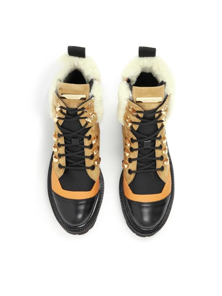 Фантастические женские ботинки из высококачественной замши, синтетики и текстильных материалов поражают оригинальным дизайном. Верх, сочетающий в себе материалы разных фактур и цветов, выглядит авангардно и современно. Сапоги в стиле траппер – удобное и в то же время очень модное дополнение к осенне-зимнему образу, которое легко украсит любой монотонный классический наряд.