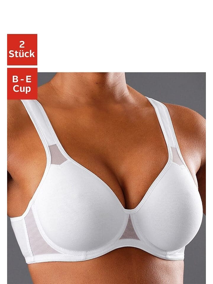 PETITE FLEUR: бюстгальтер-майка в упаковке по 2 шт., на косточках и бесшовных чашках заданной формы (без набивки). Мелкие сетчатые вставки. Регулируемые бретели и застежка сзади. Классическое нижнее белье. Комфортное повседневное белье. Модное нижнее белье. Изготовлен из 90 % хлопка, 5 % полиамида, 5 % эластана.
