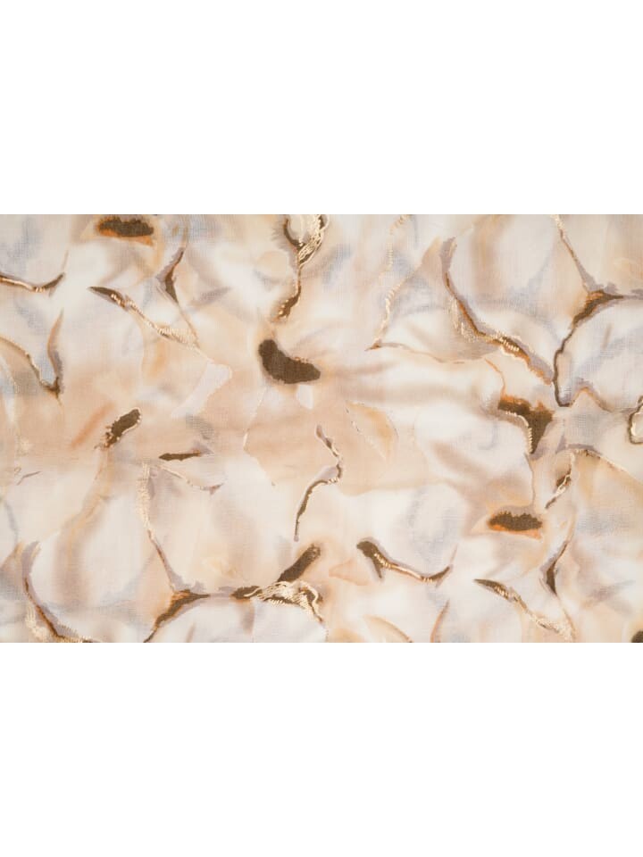 Мягкий легкий шарф styleBREAKER со струящимся мраморным узором в акварельном стиле и металлическими акцентами с короткой бахромой на концах.