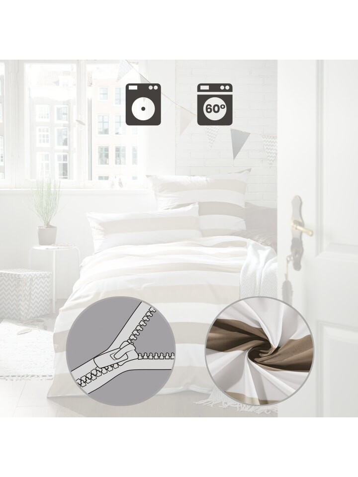 Постельное белье REDBEST Renforceé в экономной упаковке из 4 предметов. Постельное белье неподвластно времени красиво и со вкусом, оно выполнено в полоску и в элегантной цветовой гамме. Эта смесовая ткань, изготовленная из поликоттона renforcé, не только приятна для кожи, пропускает воздух и регулирует температуру, но также быстро сохнет и за ней легко ухаживать. Практичная застежка-молния облегчает надевание.