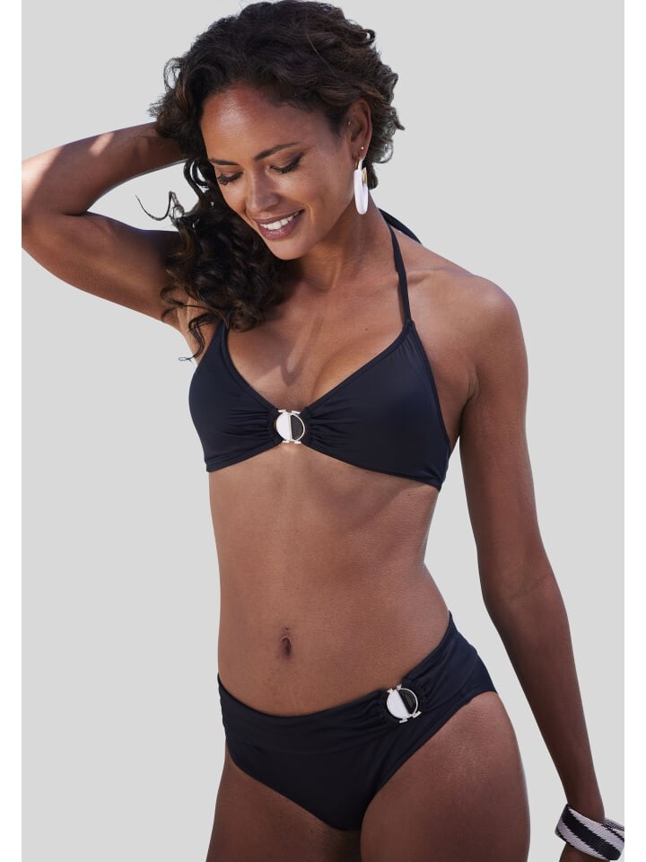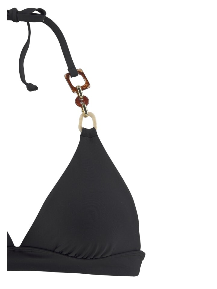 Треугольный верх бикини от Lascana. Декоративные детали на одном ремешке. Со съемными чашками. Чтобы закрыться сзади. Принцип Микс-Кини. Комфортное качество с содержанием переработанного полиамида.