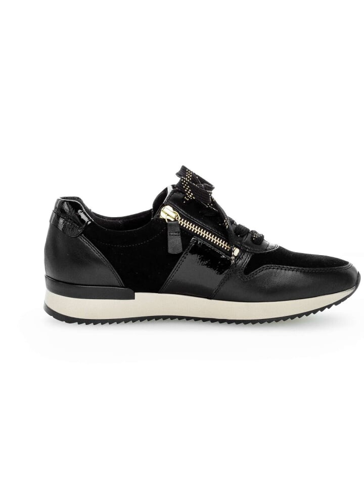 Модные модные кроссовки Gabor черного цвета – оптимальный выбор для стильных женщин. Верхний материал изготовлен из высококачественной смеси кожаных материалов и придает кроссовкам неповторимый вид. Ширина обуви F означает, что кроссовки идеально подходят для женщин с узкой и нормальной стопой. Благодаря оптимальной посадке пользователь получает более широкую зону протектора в области мяча и больший комфорт. Модель оснащена съемной стелькой, которую можно легко заменить на ортопедические стельки.