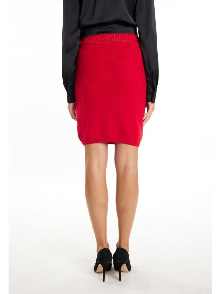 Наслаждайтесь праздничными часами в вязаной юбке от Faina. Мягкая пряжа расшита в шахматном порядке нитками золотого цвета и пайетками, спинка однотонная. Широкий эластичный пояс обеспечивает комфортное ношение. Сочетайте элегантный дизайн с подходящим кардиганом бренда.