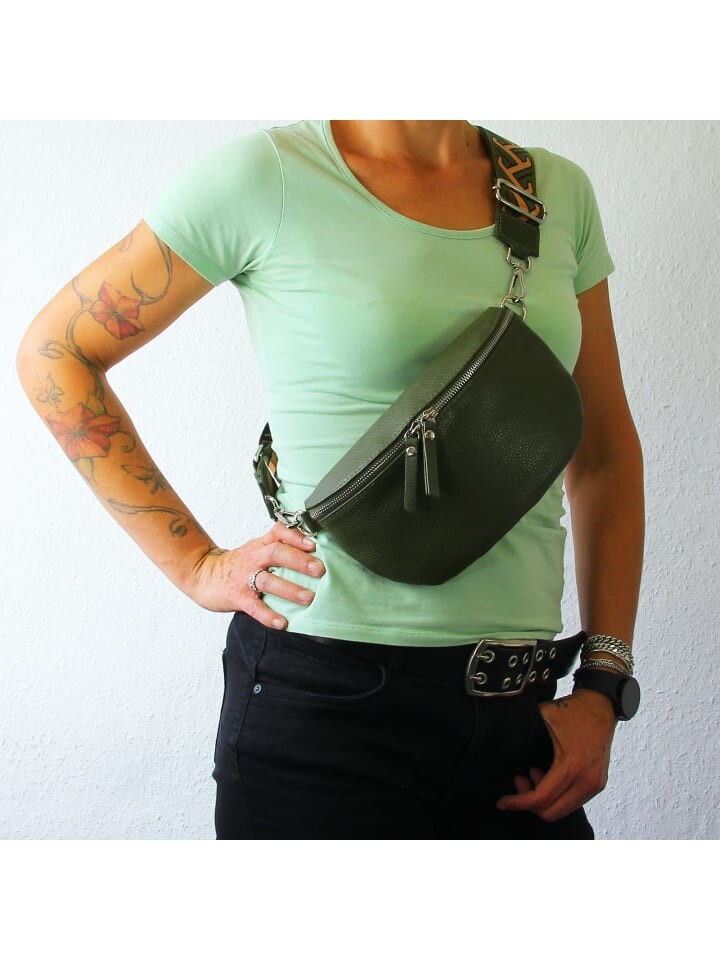 Повседневная поясная сумка из натуральной, цельной телячьей кожи с большим отделением и небольшим отделением на молнии. Эта современная и вместительная поясная сумка незаменима в повседневной жизни и в свободное время. Модный дизайн можно носить повседневно через плечо с регулируемым по длине цветным холщовым ремешком в стиле бохо на бедре или через плечо. Внимание: ремешок всегда сочетается по цвету с кожей, а также содержит кожаные детали в цвете сумка. Лента на картинке является лишь примером и может отличаться! В комплект поставки входит небольшой кулон с итальянским флагом, который можно носить на изделии или в качестве брелока для мобильного телефона.