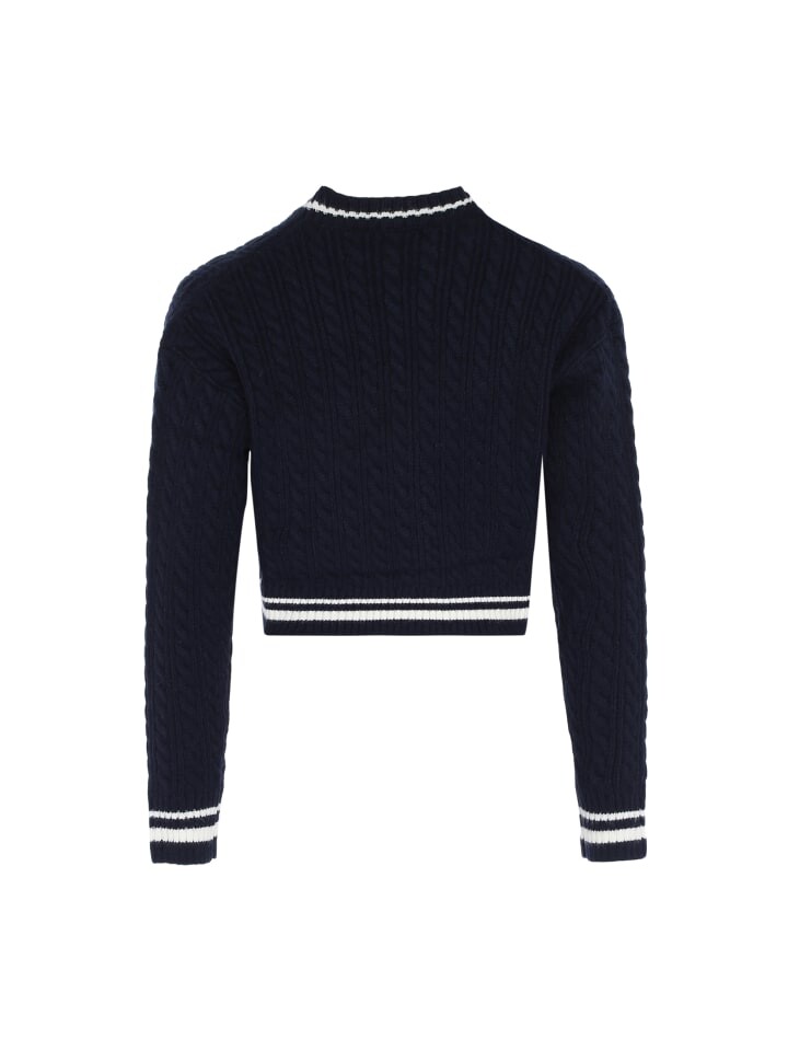 Женский свитер из мягкой вязки, укороченный, с длинными рукавами и полукруглым вырезом. Низ свитера и рукава украшены манжетами и контрастными полосками. Рекомендуем с брюками с завышенной талией. Эта модель доступна в нескольких цветовых вариациях.