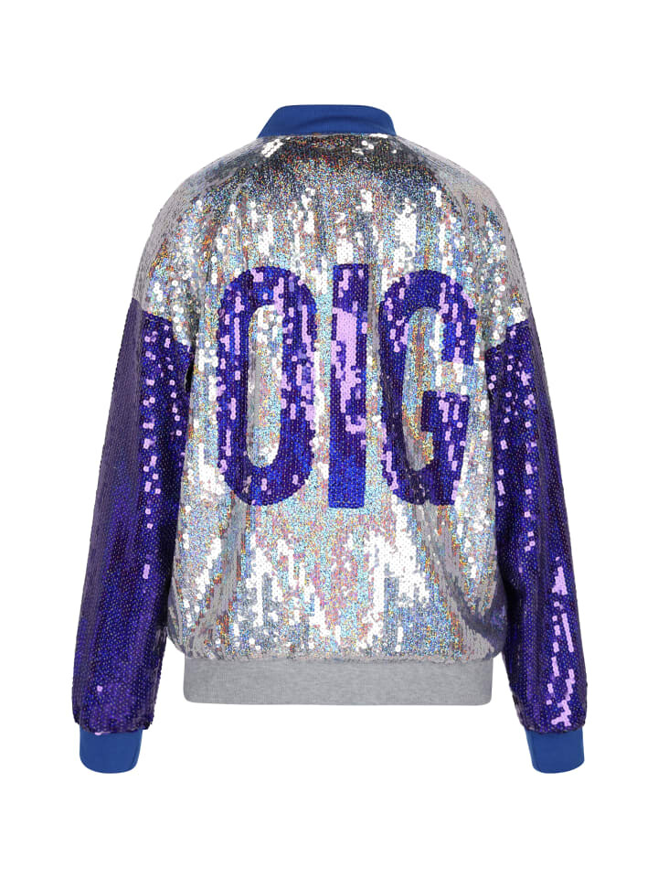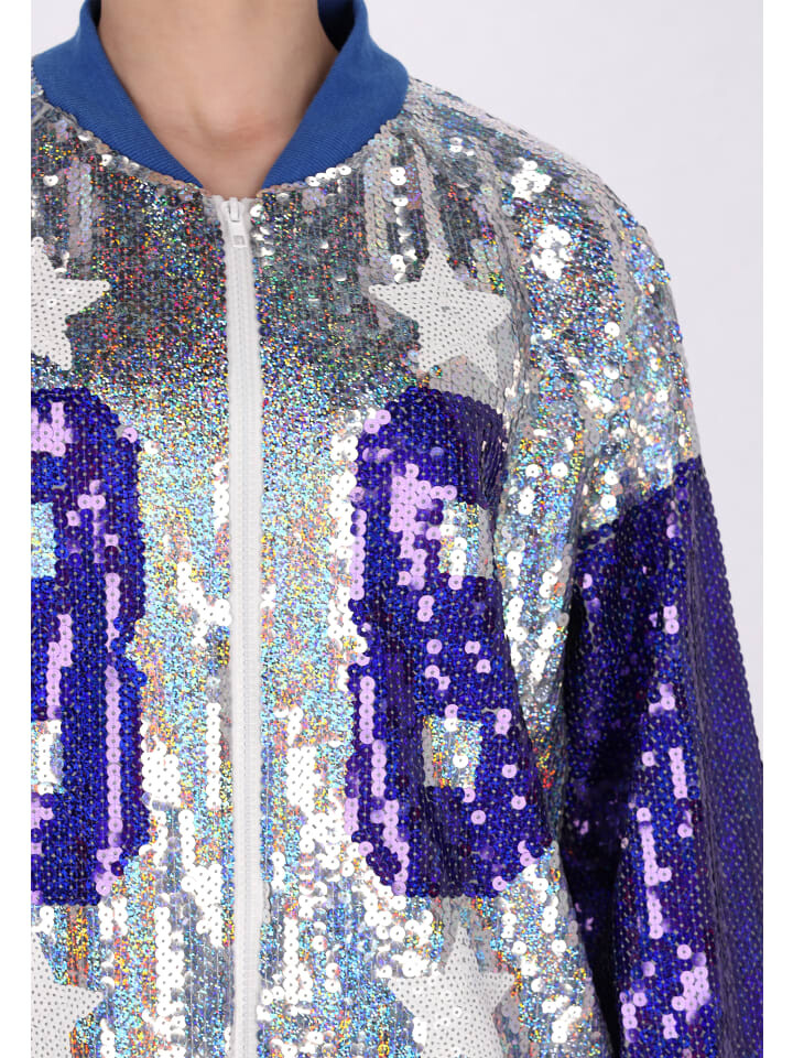 Раскройте свою внутреннюю диву с помощью этой потрясающей куртки-бомбера. Оно украшено мерцающими пайетками от воротника до манжет и украшено ярким узором в виде звезд и цифр спереди. Привлекательный дизайн излучает уверенность, привлекает внимание и идеально впишется в ваш повседневный гардероб. Застегните молнию и ярко сияйте, куда бы вы ни пошли!