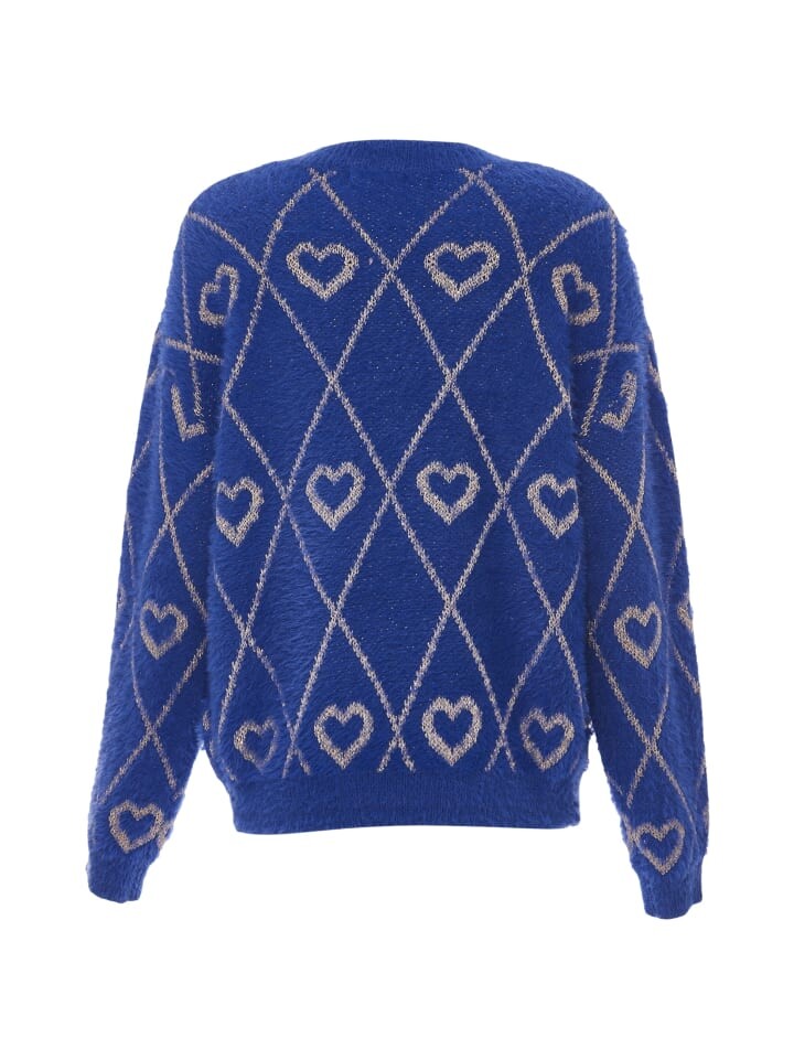Вязаный свитер от ebeeza из смеси ворсованной пряжи имеет слегка ворсистый вид и чувственный узор в виде сердечек из металлизированной пряжи золотистого цвета. В дополнение к классической форме он отличается вырезом на плечах и ребристыми трикотажными манжетами на конце.