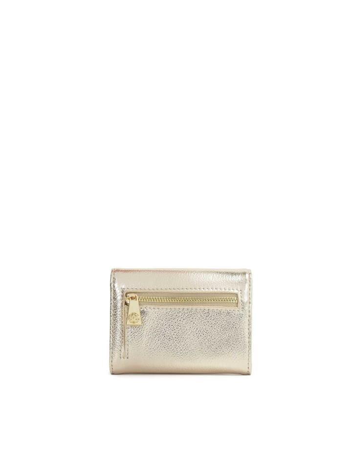 Небольшой кошелек из высококачественной кожи золотистого цвета – прекрасный образец галантерейного аксессуара, сочетающего в себе элегантность и функциональность. Он имеет клапан на молнии, который обеспечивает безопасное хранение денег и документов. Благодаря своим компактным размерам он поместится даже в самую маленькую сумочку. Это не только практичный, но и роскошный аксессуар, подчеркивающий неповторимый стиль своего владельца. Точность изготовления, внимание к деталям и выбор высококачественных материалов характеризуют этот кошелек.