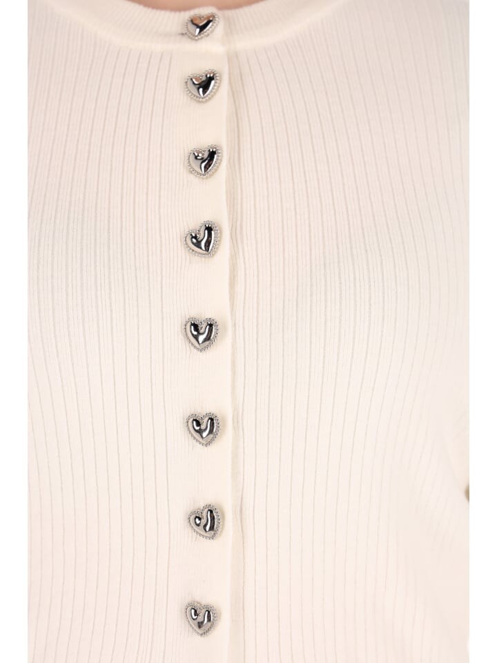 Этот кардиган с длинными рукавами имеет ребристую текстуру, круглый вырез и пуговицы в форме сердечек спереди. Разрез по низу создает утонченный эффект высокой и низкой талии, а прямые рукава и приталенный силуэт создают стильный образ для любого случая.