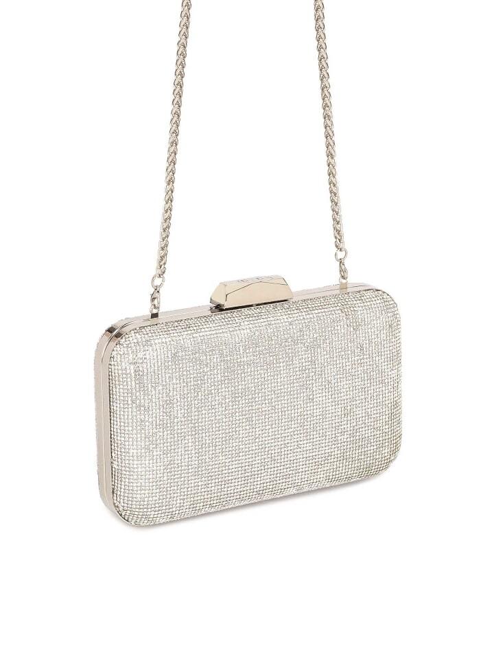 Жесткая сумка-чемодан на плечевой цепочке – исключительная модель, привлекающая внимание своим удивительным блеском. Жесткая форма украшена мелкими кристаллами, отражающими свет. Элегантная сумка в стиле гламур станет эффектным аксессуаром для вечернего наряда. Универсальный цвет шикарный, универсальный и вневременной.