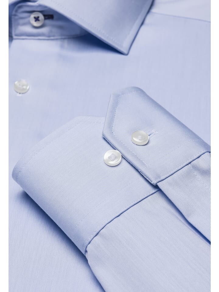 Рубашка из чистого хлопка с длинными рукавами. Индивидуальный крой с планкой на пуговицах во всю длину и воротником New Kent. Высококачественная и эластичная ткань не гладится, пропускает воздух и не мнется. Настоящий талант сочетания - как с костюмом, так и с джинсами.