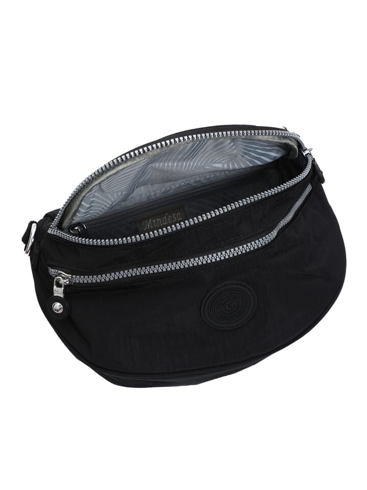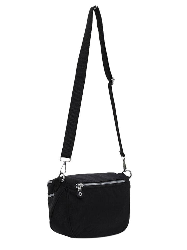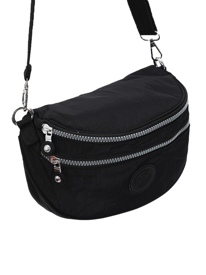 Откройте для себя стильную сумку через плечо уникальной округлой формы. Эта сумка имеет просторное основное отделение, застегивающееся на молнию и украшенное спереди концентрическими кругами. Дополнительный карман на молнии обеспечивает удобное хранение мелких предметов первой необходимости. Регулируемый ремень с металлической фурнитурой и поворотными карабинами обеспечивает универсальность при ношении.