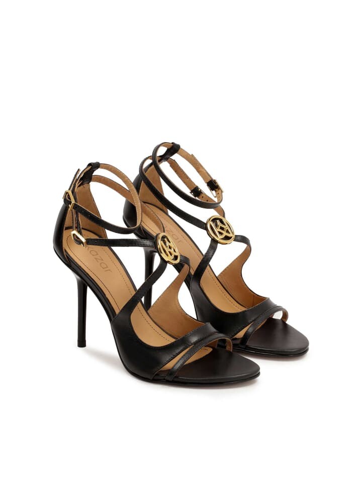 Черные босоножки сочетают в себе элегантность, комфорт и роскошь. Они изготовлены из высококачественной натуральной кожи, которая не только обеспечивает исключительный комфорт, но также прочность и долговечность. Перекрещивающиеся ремешки на передней части сандалий с монограммой e-gold KAZAR образуют тонкий, но привлекательный узор, который привлекает внимание и придает обуви изысканный характер. Высокий каблук-шпилька придает босоножкам элегантности, а обтянутый каблук и тонкий ремешок вокруг щиколотки обеспечивают устойчивость и комфорт. Эти чрезвычайно стильные босоножки идеальны для вечера в сочетании с платьем, классическими брюками или элегантной юбкой.