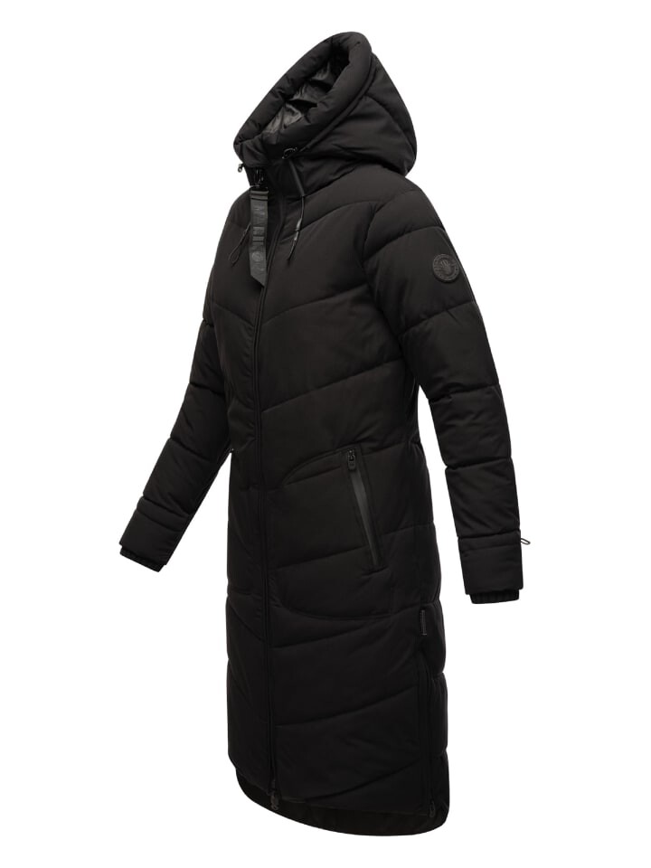 ВИД: Модное женское стеганое пальто с высоким воротником и большим регулируемым капюшоном от Marikoo для холодного времени года (осень и зима)
